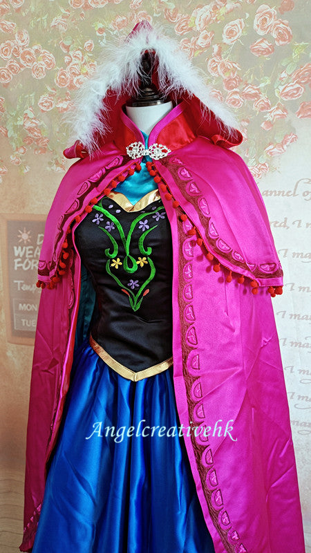 Frozen Anna Winter Embroidery Dress Cosplay Costume