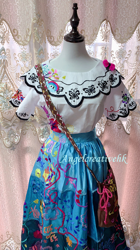 Embroidery Encanto Mirabel Madrigal Cosplay Costume with Bag